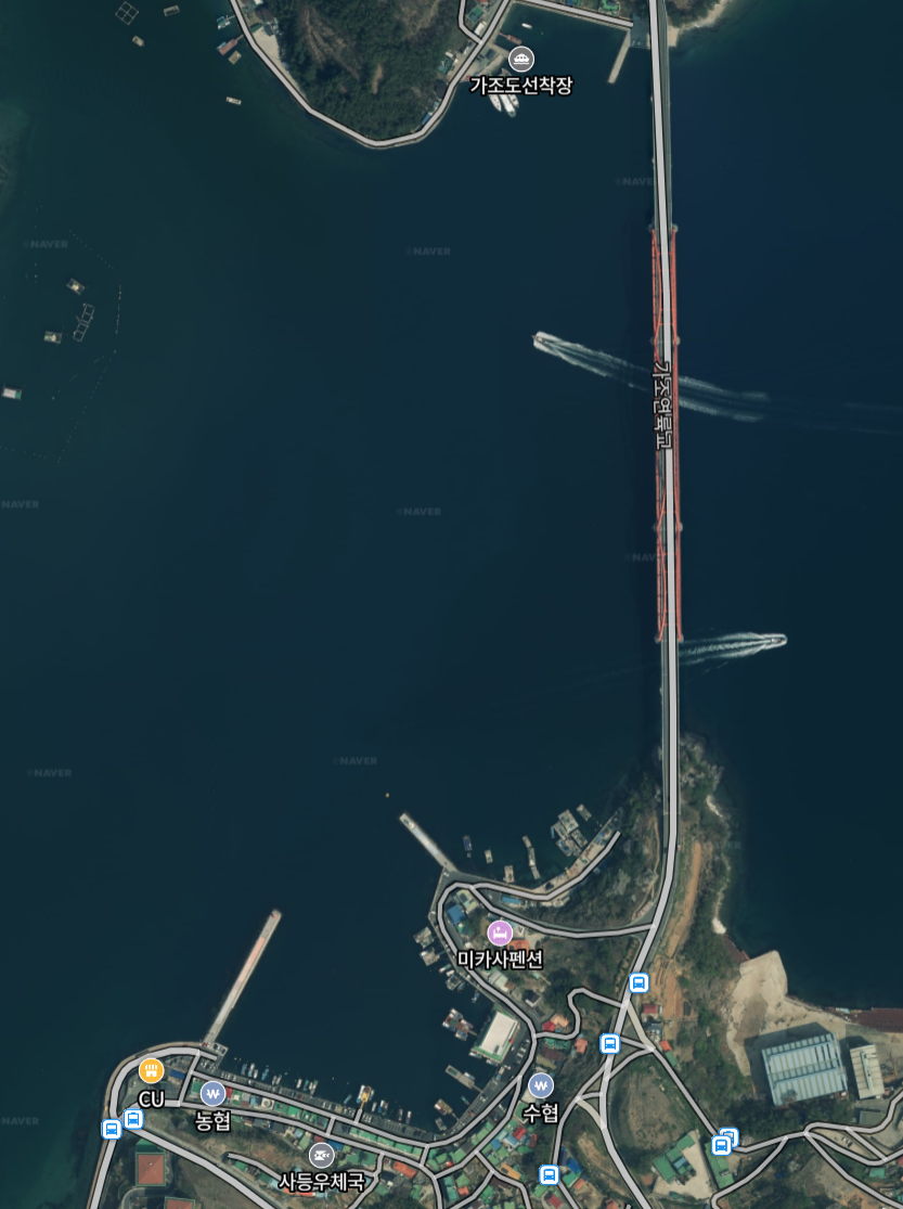 가조연륙교 밑에는 물살의 흐름이 좋아서 소코낚시로 장어 및 감성돔 등을 낚시하는 분들이 많으며 조과도 좋은 편이다.