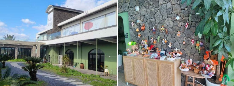 이곳에서는 신선한 제주산 재료를 활용한 디저트를 맛볼 수 있는데, 특히 딸기 케이크, 레몬 케이크, 초코 케이크가 인기 메뉴입니다. 🍰☕ 디저트와 커피의 맛은 만족스러우나, 가격대가 꽤 높은 편이라 부담스럽게 느껴질 수도 있어요. 또한, 정원 안쪽에는 러쉬 매장이 있어 향기가 가득하고, 러쉬 비누로 손을 씻을 수 있는 공간도 마련되어 있어요. 🛁✨