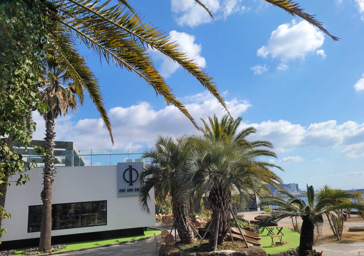 ✨ 특징: 오션뷰 감성 카페, 야자수 조경이 멋진 야외 공간, 감각적인 디저트 제공! 💛🌊