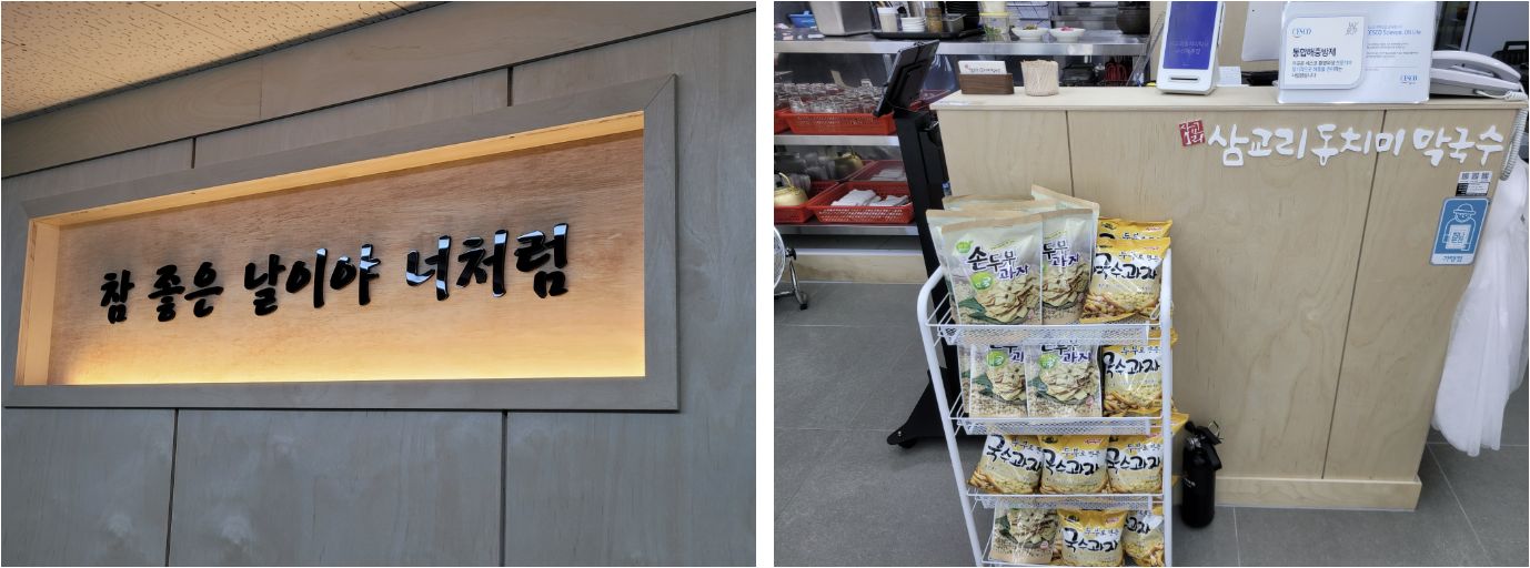전형적인 깔끔한 식당 모습이에요. 화려하거나 멋지지는 않고 실용적이며, 간단히 점심을 먹기에 편리한 구조입니다. 시원한 에어컨 속에서 가성비 좋은 국수로 한여름 쉬어 가기에 적당한 장소이네요.