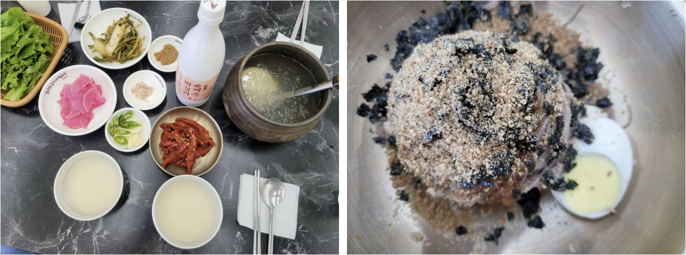 수육의 담백함과 부드러운 육질이 막국수와 어울리면서도, 시원한 막걸리 한 잔이 더해지면 그야말로 ‘제주 한여름 점심의 완성’이죠.