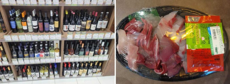 소고기 및 돼지고기 등 축산물도 많지는 않네요. 와인은 종류가 많고 회는 아주 싱싱하네요.