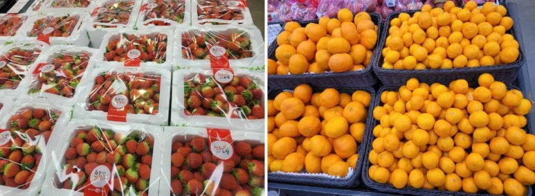 제주산 농산물이 많고 아주 싱싱하며 전라도 지역의 해산물도 많아요.