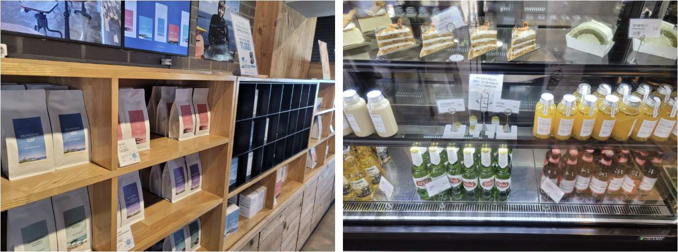 다양한 종류의 커피를 소포장하여 판매도 하고 있어요. 선물용으로 많은 사람들이 구입하는 인기 품목이랍니다. 생과일을 비롯한 쥬스들도 맛이 좋아서 더운 여름날의 열기를 단번에 씻어 줍니다. 시원한 과일 쥬스 마시고 싶지 않으신가요!