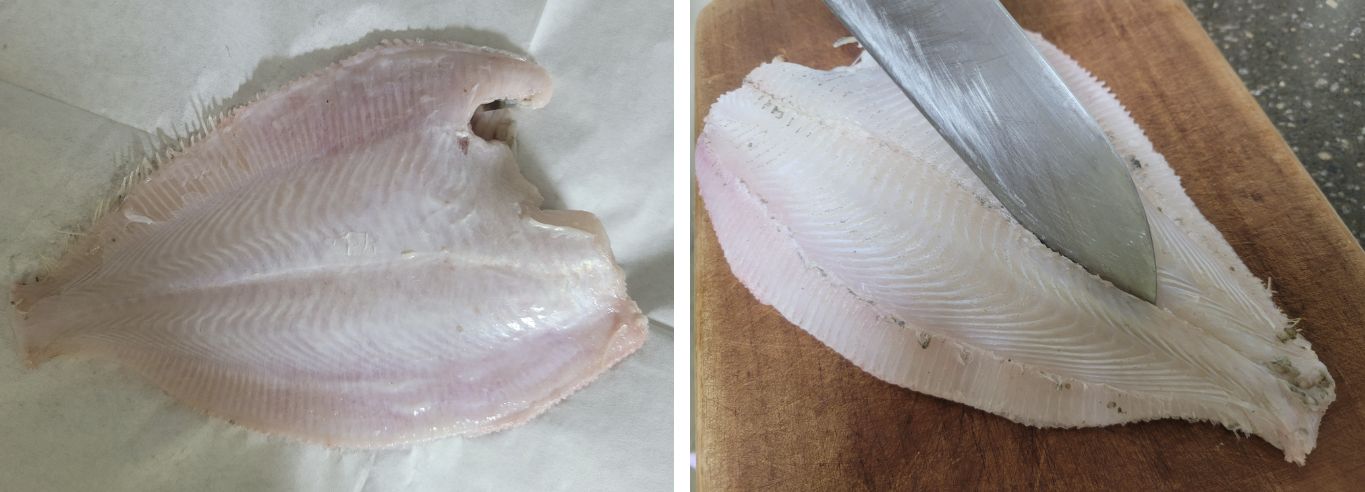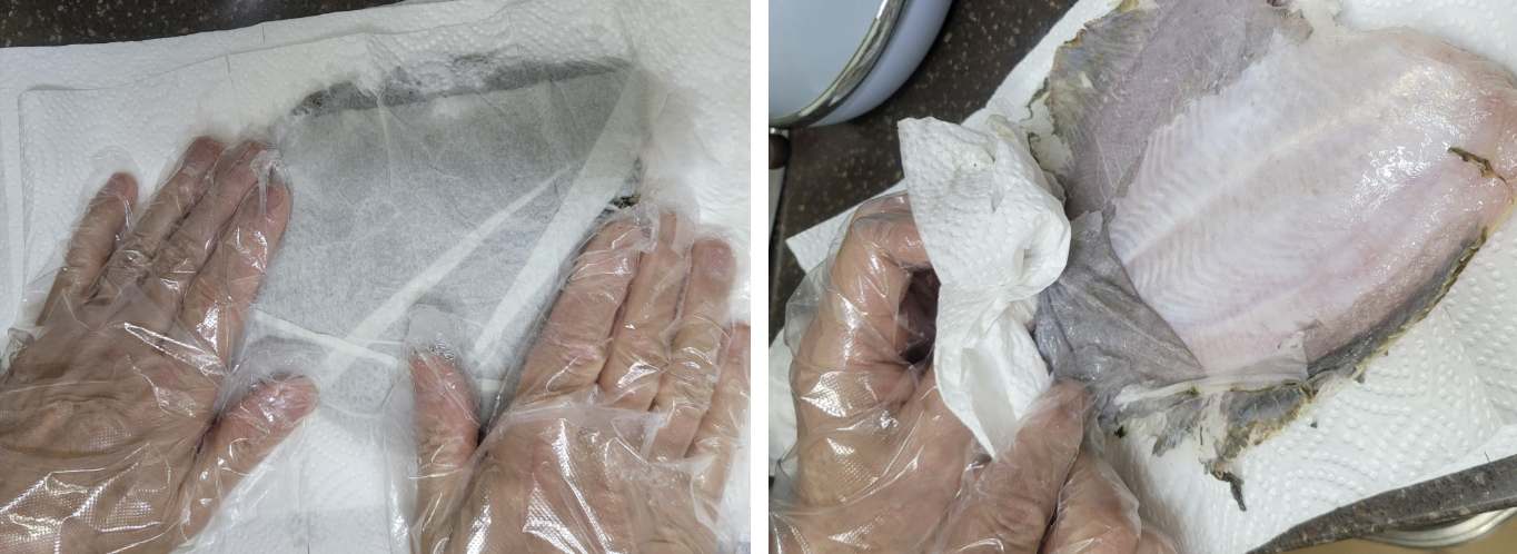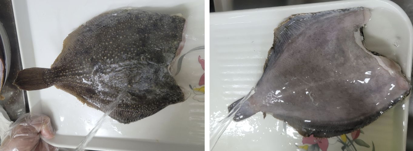 → 활어의 피와 내장을 제거하고 깨끗하게 세척한 후 키친 페이퍼로 물기를 제거 합니다.