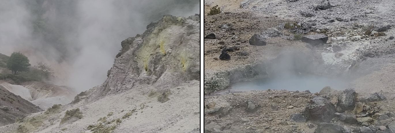 🌫️ 특징: 강한 유황 냄새, 화산 가스 분출, 유황광맥이 곳곳에 노출, 뜨거운 온천수가 분출