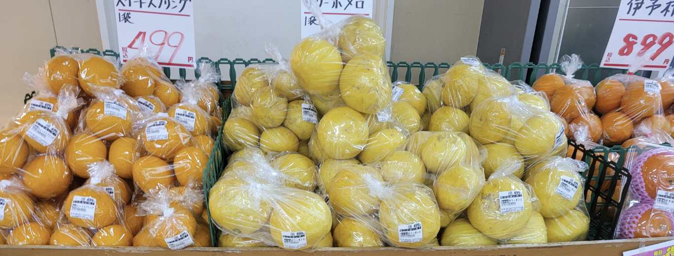 귤이나 레드향 종류는 우리나라에 비하여 가짓수가 많지는 않아요. 맛은 달콤한 편이지만 제주도의 타이백 감귤처럼 깊은 맛은 없고 '맛있다' 하는 정도이고 하귤과 미슷하게 생긴 것도 있는데 너무 시큼할 것 같아서 구입하지는 않았어요. 대체로 달콤하고 먹을만한데 제주도의 귤들이 더 맛있고 가고시마의 귤이나 과일들이 가격이 싸지는 않아요.