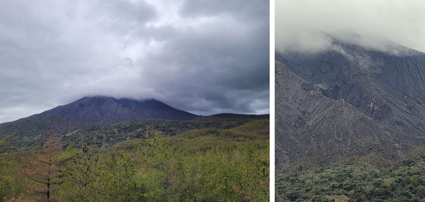 지금도 연기를 뿜는 **미나미다케(南岳)**는 주위가 시커멓고 높이 솟아 하늘을 찌를 듯한 위용을 뽐내며 사쿠라지마의 상징처럼 서 있어요.