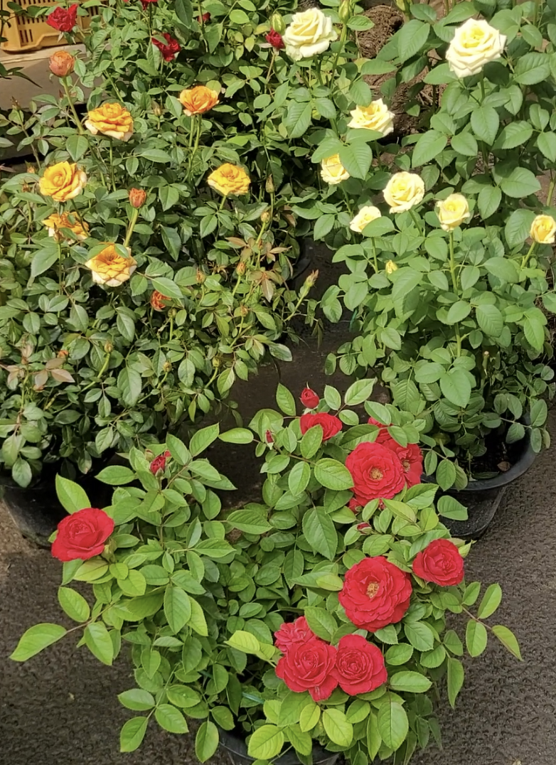 빨강, 노랑, 흰색의 예쁜 장미꽃 나무가 특히 인상 깊었어요. 판매용이라고 하지만, 잠시나마 눈이 즐거워 한참을 바라봤답니다. 🌺
