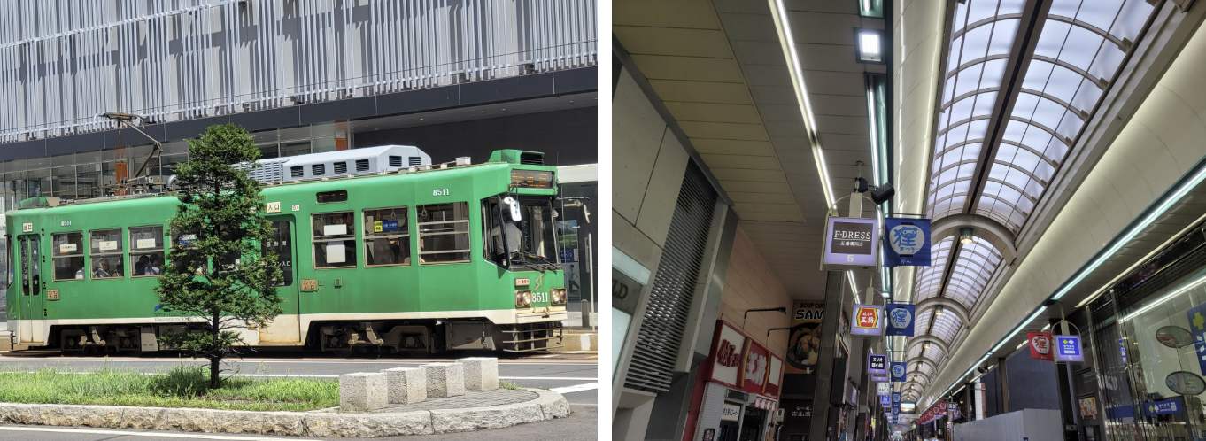 시내에서 운행되는 전차와 쇼핑 거리!