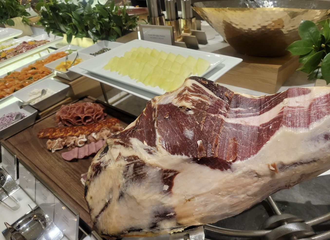 안쪽으로 들어서면 갈비·하몽·조개요리·깐새우까지 이어지는 풍성한 라인업이 펼쳐지는데,