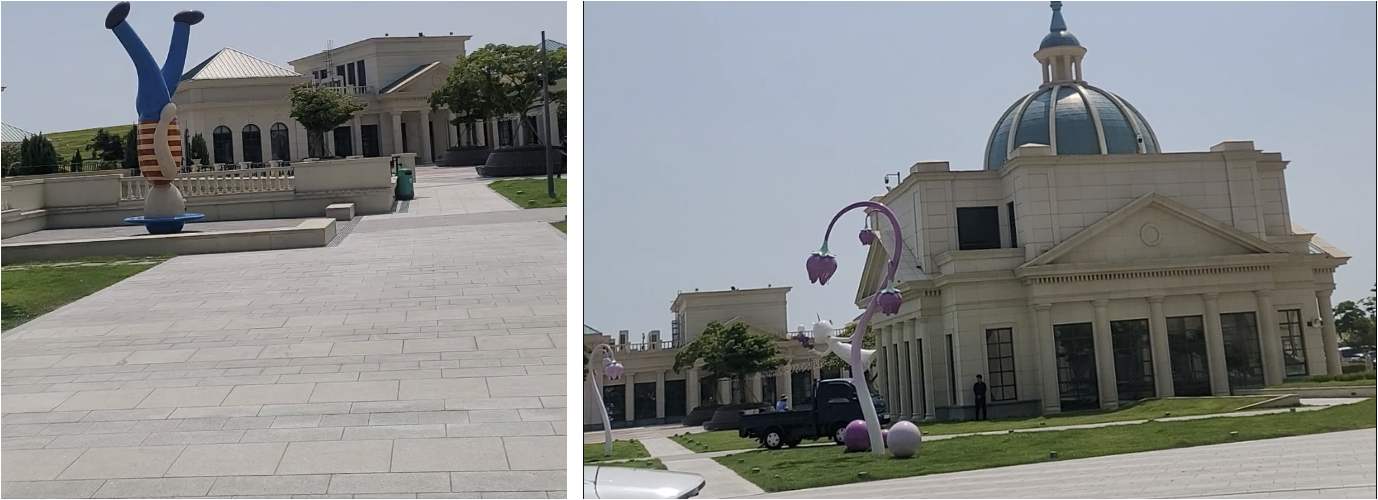 중앙 광장에는 거꾸로 인형과 그네 등이 설치 되어 있어 사진 찍기 좋아요. 가운데 있는 건물 아래에는 식당이 있어서 멋진 바다를 보면서 맛난 음식을 먹을 수 있어요. 거꾸로 인형과 사진 한번 찍으실까요?