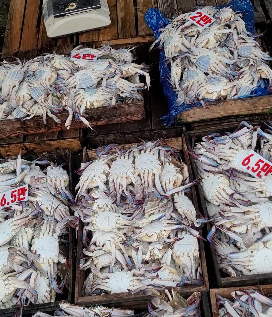 겉보기엔 평범한 항구 시장 같지만, 가까이 다가가는 순간 생생한 활기와 비릿한 바다 향, 그리고 막 잡혀 올라온 어종들이 잔뜩 펼쳐져 있었어요. 🐟🦐