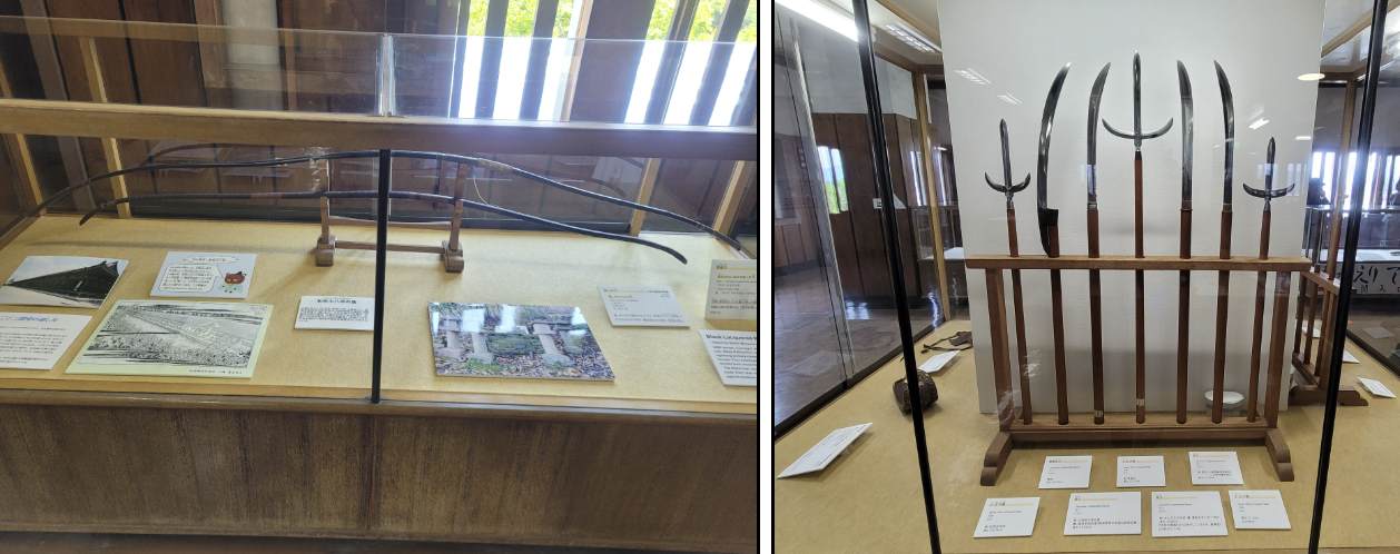 일본의 장궁과 창칼입니다. 활은 매우 길어서 멀리는 나갈것 같았으나 실효성이 떨어져 보였어요. 대신 창이나 칼은 매우 날카롭고 강해보여서 섬뜩한 느낌이 들었답니다.