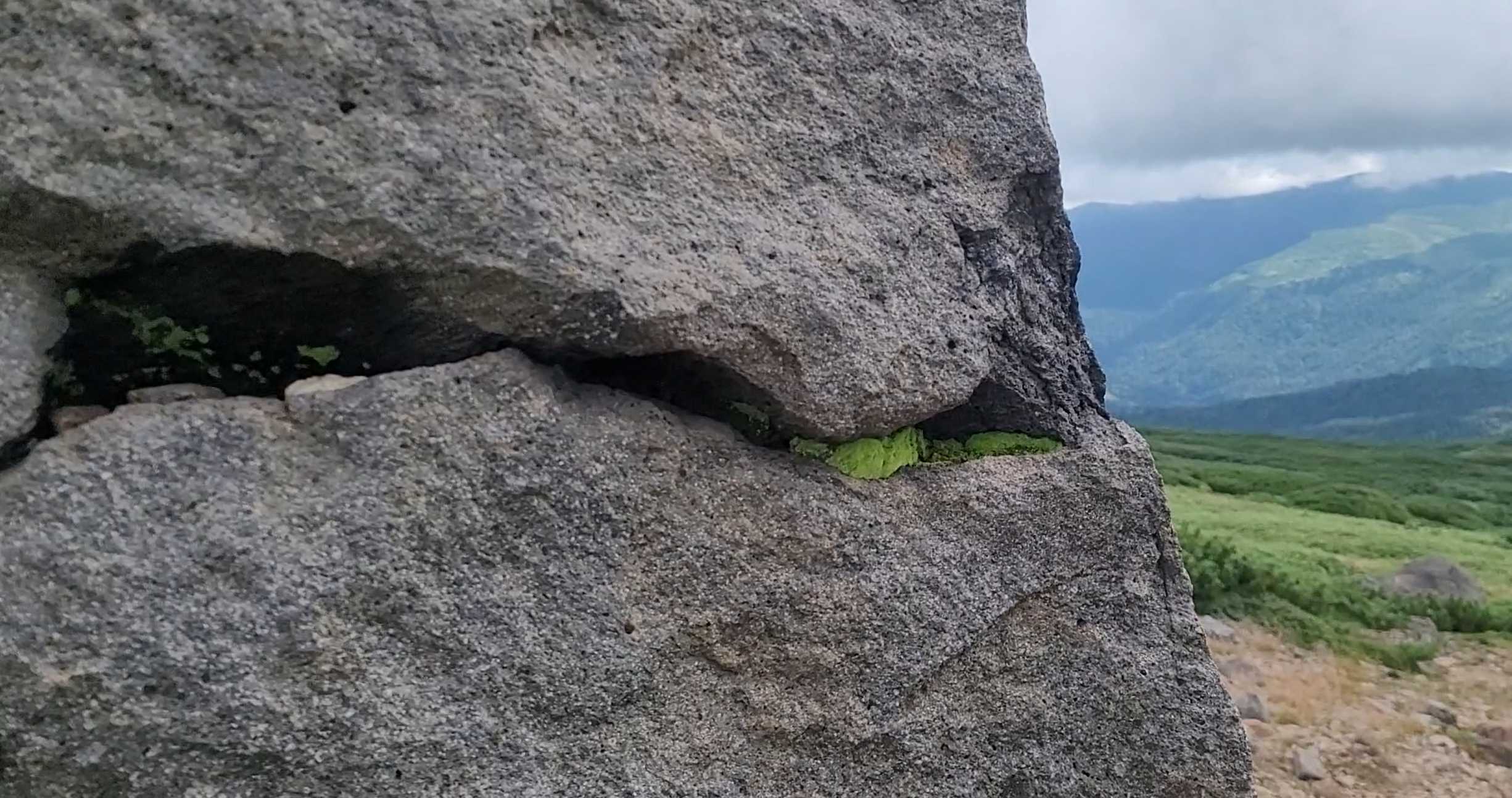 커다란 바위 틈 사이에서 초록빛 이끼와 작은 식물들이 강인하게 살아가는 모습은 자연의 생명력을 강하게 느끼게 했습니다.