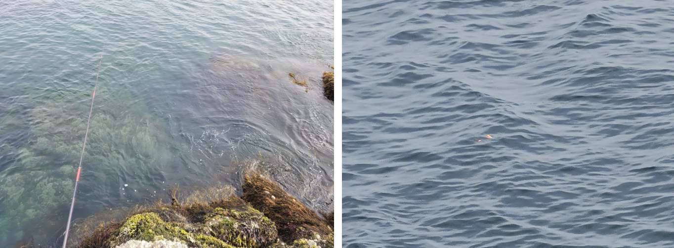 처음 자리 잡았던 포인트는 물살에 잠길 듯한 위태로운 상황이 되어버려, 결국 낚싯대를 거두고 뒷쪽 바위 안통, 조금 더 안전한 지형으로 자리를 옮겨야 했습니다. 🌊⚠️