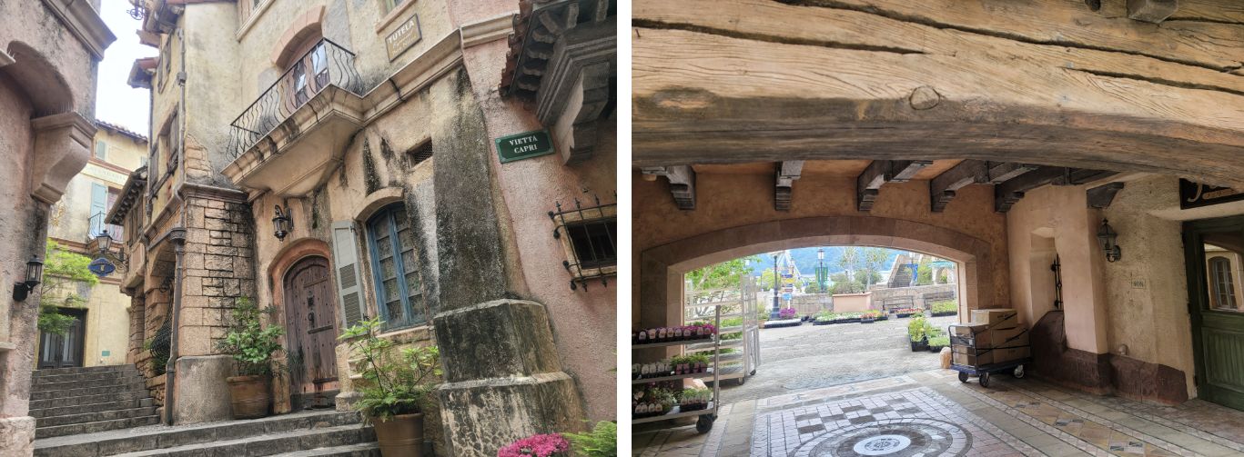정문 입구에서 들어오면 첫 번째 나오는 골목인데 마치 유럽의 주택 골목을 올라 가는 듯한 느낌이에요. 너무도 잘 만들어 져서 고풍스럽고 유럽의 분위기가 그대로 재현된 듯 합니다. 아치형 터널도 연인과 손잡고 걷기에 너무 감성있지 않나요?