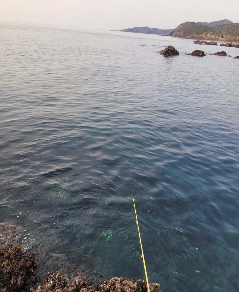 🌊 포인트의 지형은 왼쪽이 넓은 갯바위 지대, 오른쪽은 비교적 수심이 깊은 직벽형 구조의 포인트였어요. 앞쪽은 외해와 바로 맞 닿아서 조류 소통이 좋고 바람만 세지 않다면 정말 낚시하기에 좋은 곳이었죠.