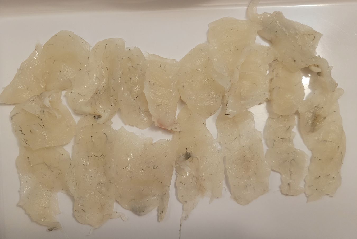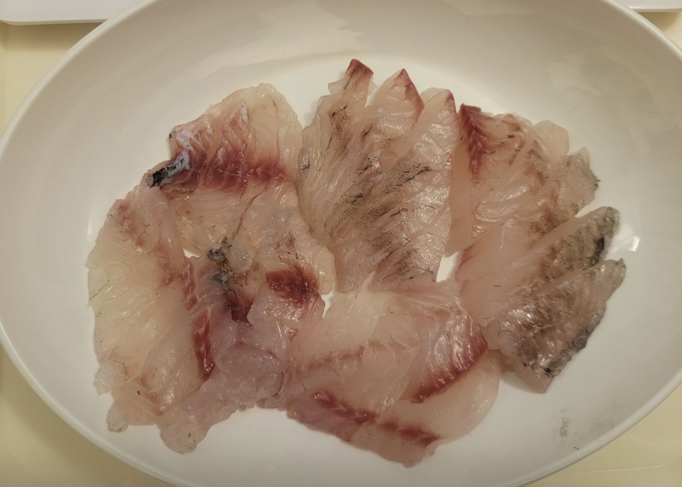 이것은 필레 상태에서 껍질을 제거하고 회를 뜨는 것이 수율이 아주 좋습니다.