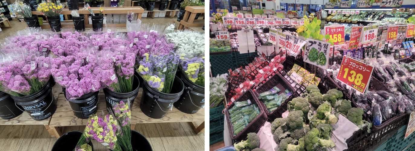 매장을 들어가면 바로 꽃매장이 나와서 마음을 따듯하게 해줍니다. 옆에있는 농산물들도 매우 싱싱하고 종류가 다양해서 이 고장의 풍요로움을 느낄 수 있었어요.