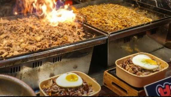 특징: 화려한 불 쇼 퍼포먼스와 함께 맛난 불고기 밥과 소바를 요리해요 🍢🌮