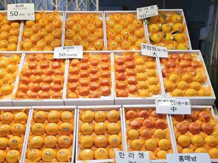 🍢 대표 상품: 제주 감귤, 한라봉, 감귤 초콜릿, 수제 공예품, 캐릭터 굿즈 다양