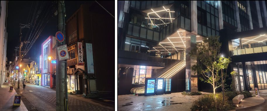 역의 북쪽으로 아뮤플라자가 붙어있고, 남쪽으로는 일본의 정취를 물씬 풍기는 야키니쿠 등 작은 식당들이 매우 많아 저녁때 가면 저절로 즐거워져 그들의 일원인것 처럼 즐길 수 있습니다.