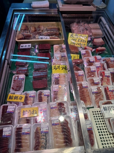 다음은 고래고기를 판매하는 집으로 밍크고래를 해체하여 부위별로 소분하여 팔고 있었습니다.