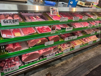 시장의 중앙 부근에 명태나 대구 등의 어란들 파는 상점이 있고, 정육점도 그 옆에 있었는데, 흑우는 마블링이 매우 많은 것이 우리나라의 꽃등심처럼 비싸게 팔리고 있었습니다.