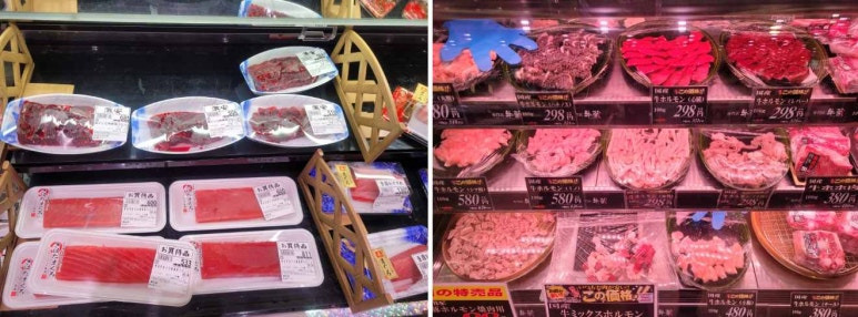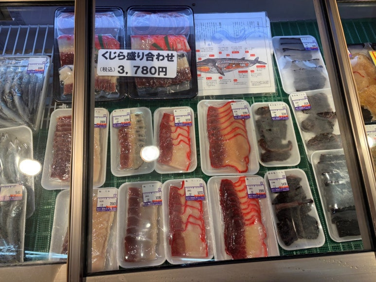 🐠 특별한 식품도 있는데 바로 생 고래고기와 소와 돼지 내장, 닭내장이에요 이곳에서는 재래시장이 아닌 일반 마트에서도 가축 부산물을 많이 팔아요.
