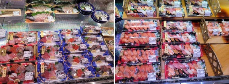 🍡 일본 전통 간식(모찌, 만주, 화과자 등), 🍶 사케 및 일본 주류 등이 있습니다. 특히, 🐠 신선한 생선회와 초밥 및 저렴한 도시락 종류가 많고 다양해 추천합니다.