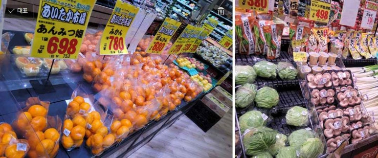 - 신선한 과일 및 채소 (일본산 딸기, 감, 멜론 등)