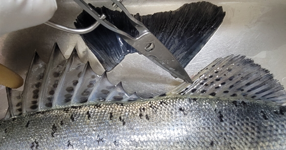 - 머리를 잘라내고, 등뼈를 따라 칼을 밀어주면서 살을 발라냅니다.