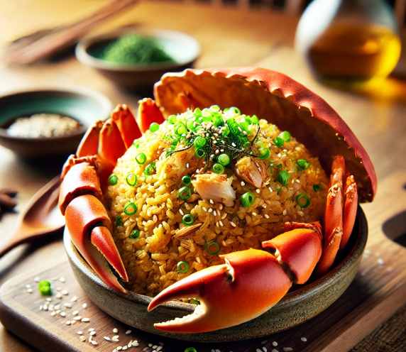 게 내장의 깊고 달콤한 감칠맛이 살아있는 특별한 볶음밥, 맛있게 즐기세요! 🍽️😊