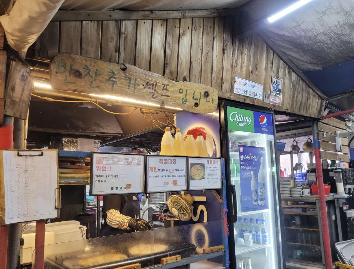 현지인과 관광객이 가릴 것 없이 모두가 이 집으로 몰려드는 모습에 호기심이 생겨 저도 발걸음을 멈췄어요. 약 30분 가까이 기다린 끝에 겨우 자리를 잡았을 때, 이미 주변은 해물파전과 순대국밥, 닭발, 꼼장어 볶음, 돔배고기 수육을 주문하는 손님들로 북적였죠. 🍲🍶