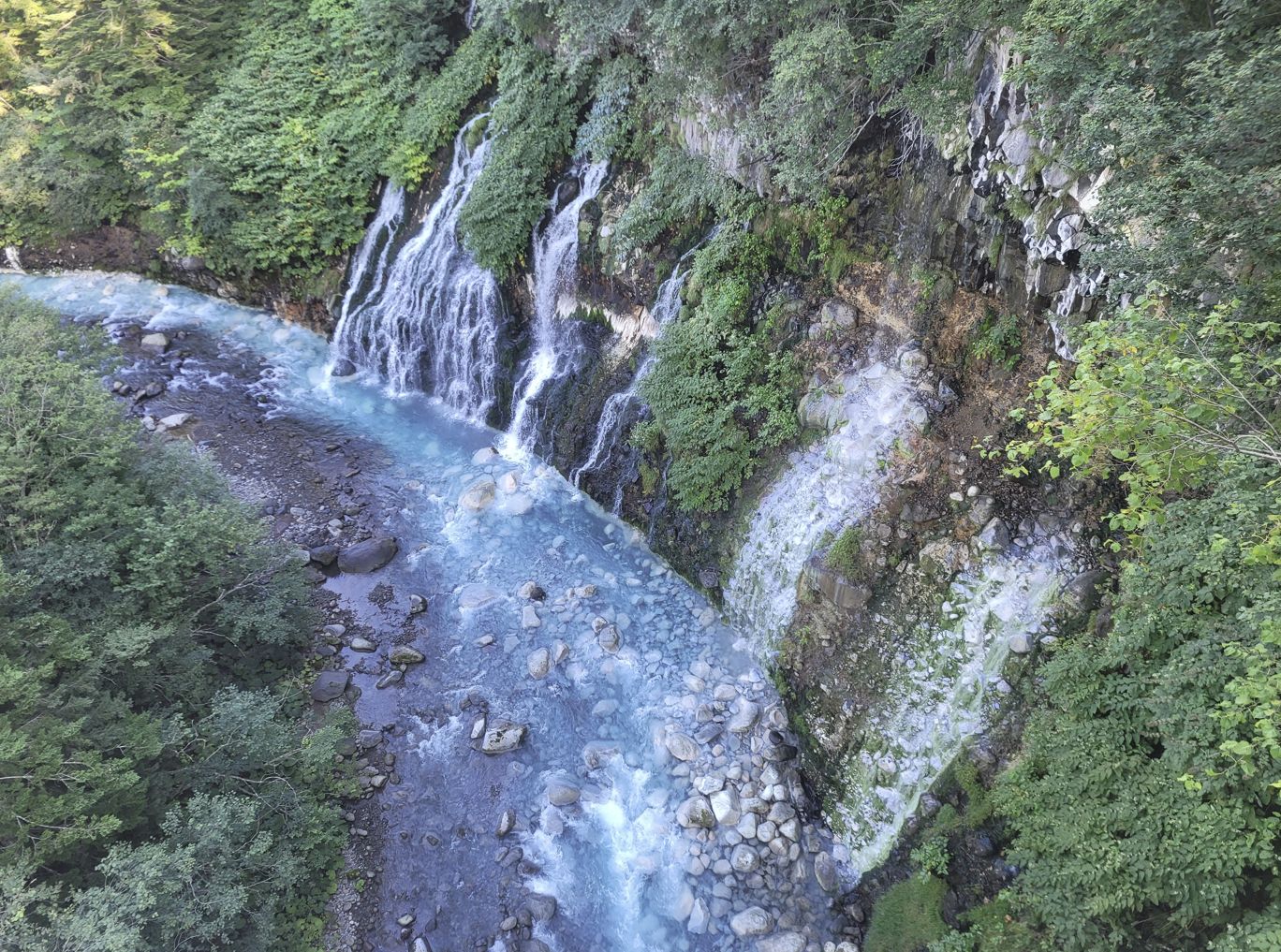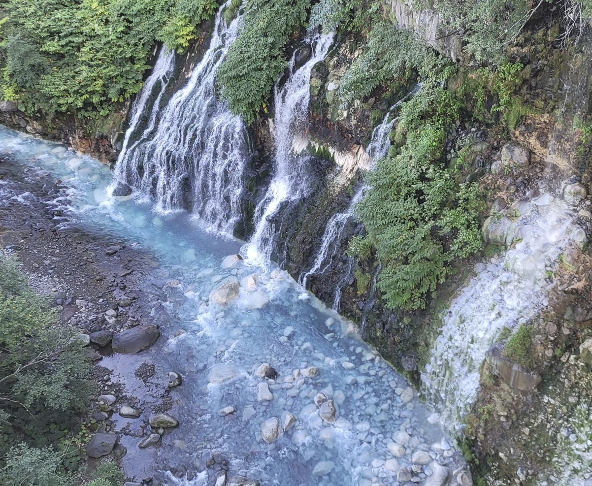이 폭포의 물은 비에이산과 도카치산 화산 아래 계곡에서 시작되어 흘러온 물줄기라고 합니다.
