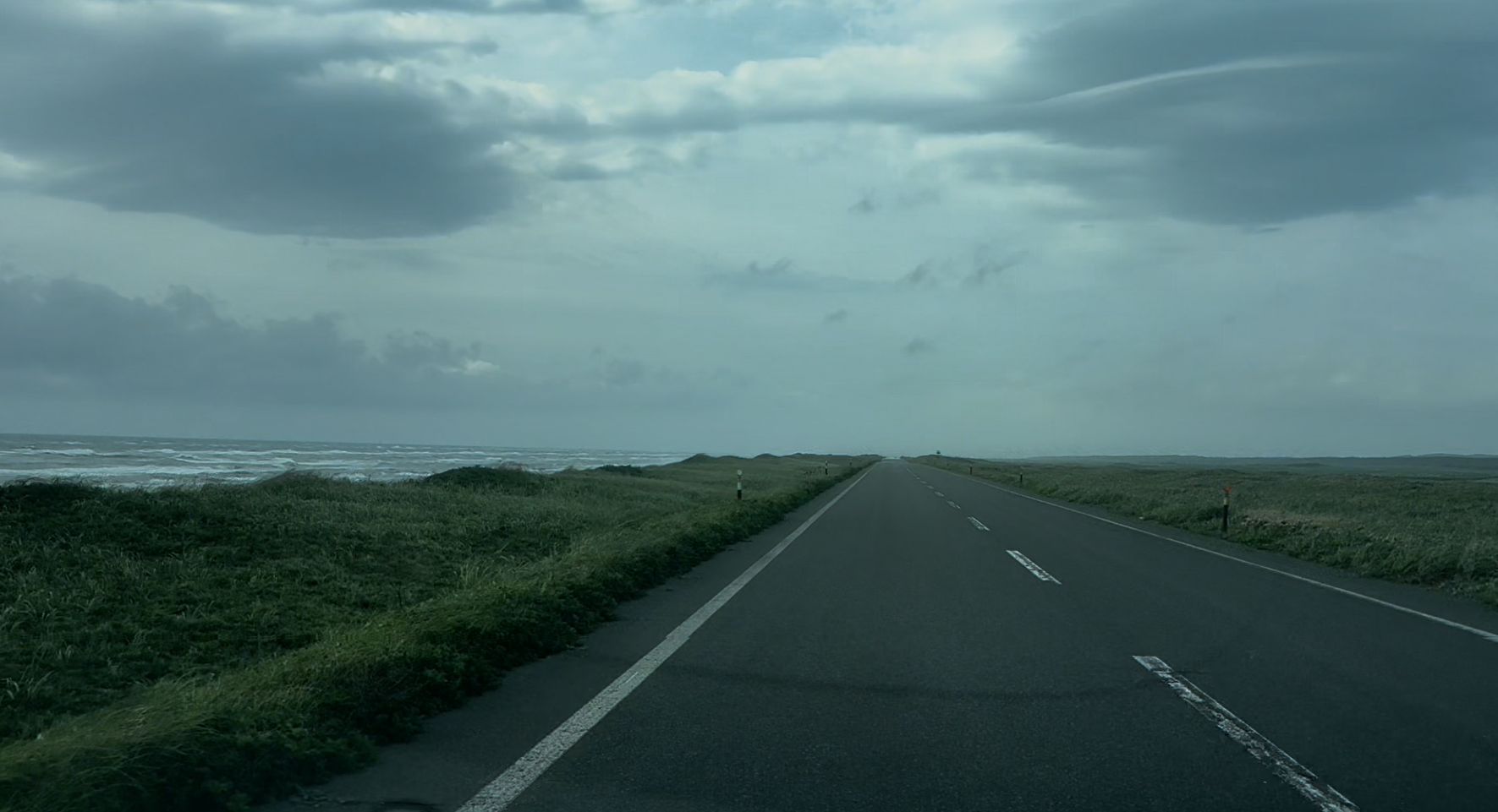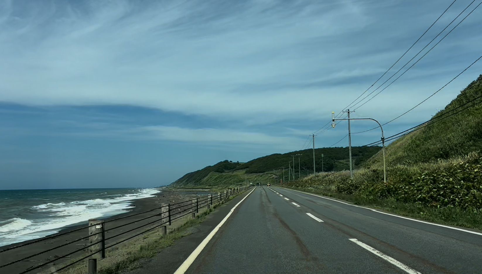 좌측에는 끝이 보이지 않는 바다와 수평선, 우측에는 지평선처럼 펼쳐진 대지가 이어졌고, 이 구간이 몇 시간이고 계속되었다.