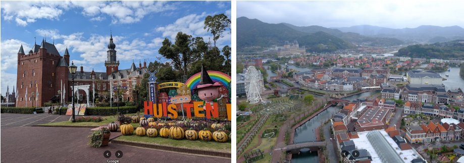 특징 : ‘명칭은 네덜란드의 왕궁 중 하나인 하우스텐보스 궁전에서 유래했다. 네덜란드 마을을 모방한 테마파크로 놀이기구가 있으며 유명한 관광 명소의 모조품이 전시되어 있다. 1992년에 개장했으며, 도쿄 디즈니랜드, 오사카 유니버셜 스튜디오와 같이 일본 주요 테마파크 관광지이다.