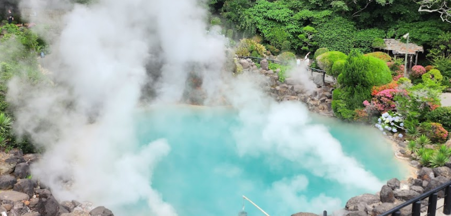 ㅇ 흰연못지옥(白池地獄, 시라이케지고쿠): 섭씨 95도이며 온천으로 열대어를 사육하고 있고, 유백색의 온천이 특징이다.