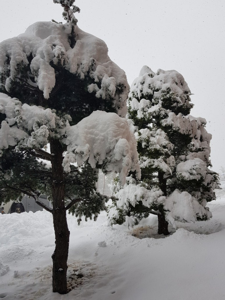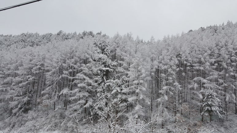 강릉과 삼척은 춥고 폭설도 잘 내리지만, 특이하게 동해시에도 아침에 폭설이 내렸습니다. 동해시는 주변에 청옥산, 두타산으로 둘러싸여 겨울에도 기후가 온난하고 영하로 내려가는 날이 많지 않으며, 바람도 그리 강하지 않은 지역입니다. 다만, 봄이 오면서 동풍이 불면 동해의 수증기가 태백산맥에 가로 막혀 막대한 폭설을 퍼붓는 경우가 가끔 있습니다. 아침에 보니 차가 못 다닐 정도로 많은 눈이 왔으며 그 경치가 장관이었습니다.