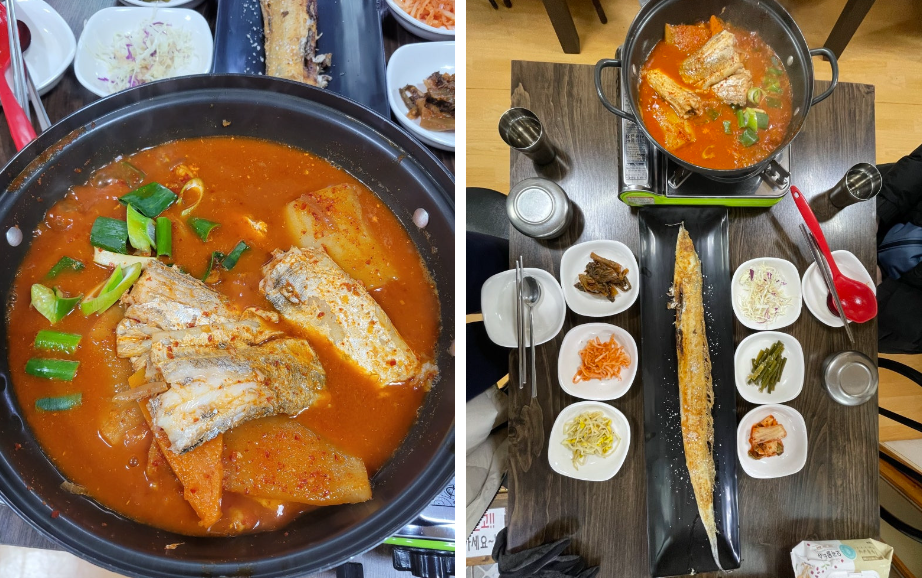 모슬포에는 음식점이 많지 않아 갈만한 곳이 적은데, 그나마 관광객들에게 많이 알려져 찾게 되는 갈치조림 전문점입니다. 제주도내 다른 집들과 맛은 비슷하고, 음식 재료의 품질은 중간 정도입니다. 소박한 반찬과 함께 조림과 통갈치구이가 나옵니다.
