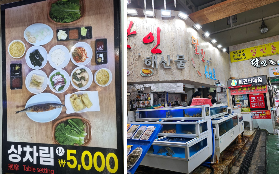 달인촌에서는 제주 뿔소라, 딱새우 등 해산물 모듬도 판매하므로 추가하면, 더욱 맛좋은 저녁이 된다.