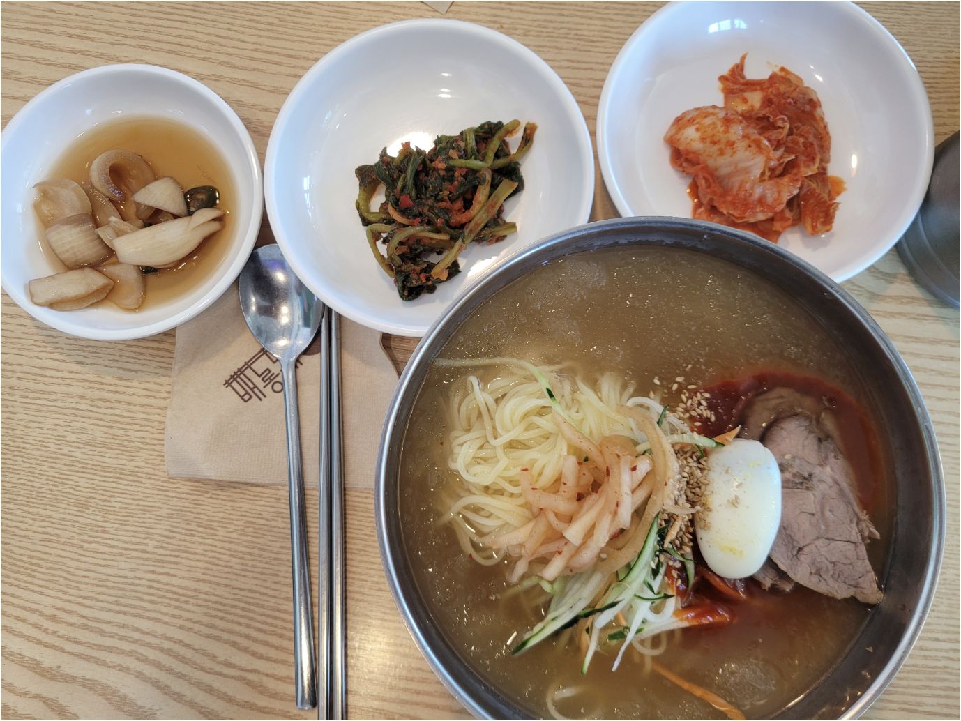차가운 육수와 깔끔한 고명이 어우러진 시원한 국수. 더운 날씨에 해수욕 후 먹으면 최고랍니다.